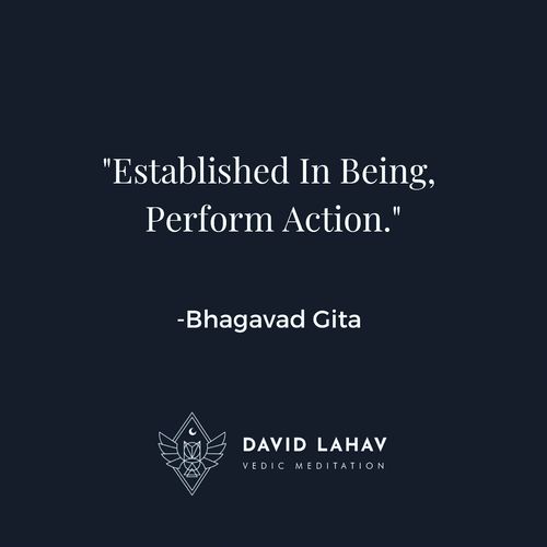 The idea of “Established in Being, Perform Action” is that we never want to lose our connection to Being, even while going about our daily lives.
